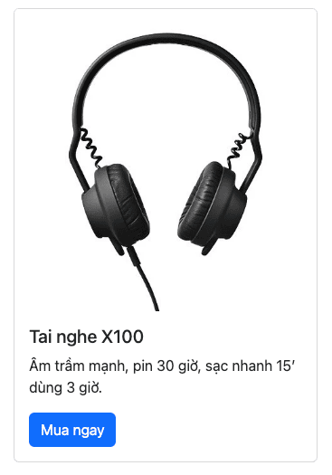 Kết quả cả hai cách đều tạo được card có ảnh, tiêu đề, mô tả và nút bấm như nhau:
