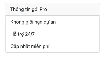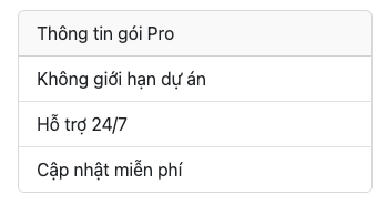.list-group-flush | Xóa border & padding dư thừa khi list group nằm trong card |