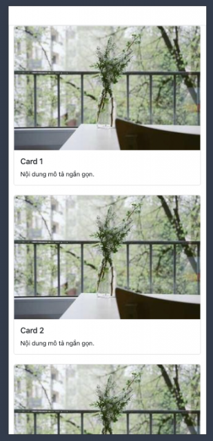 Điểm mạnh của Card là tính module. Mỗi card là một khối nội dung độc lập, dễ dàng sắp xếp trong layout và đảm bảo bố cục trực quan, gọn gàng.