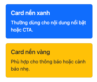 - Tiêu đề: dùng .card-title trên thẻ h* (h5, h6…)